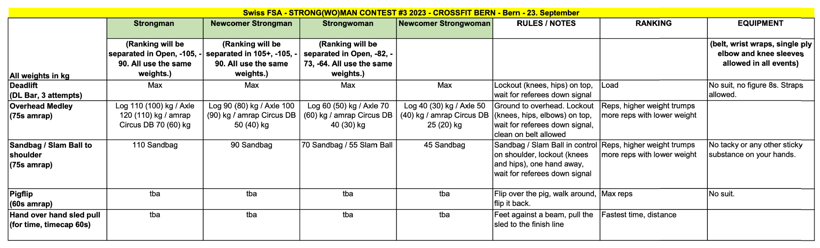 *: Strongman: ranking will be done overall and separeted in weight classes! (>105kg / <105kg / <90kg)