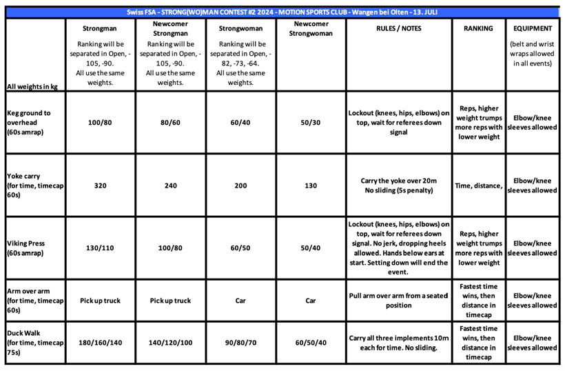 *: Strongman Open: ranking will be done overall and separeted in weight classes! (>105kg / <105kg / <90kg)
