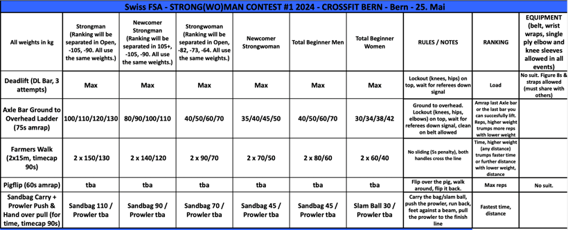 **: Strongwoman Open: ranking will be done overall an separeted in weight classes! (>82kg / <82kg)
