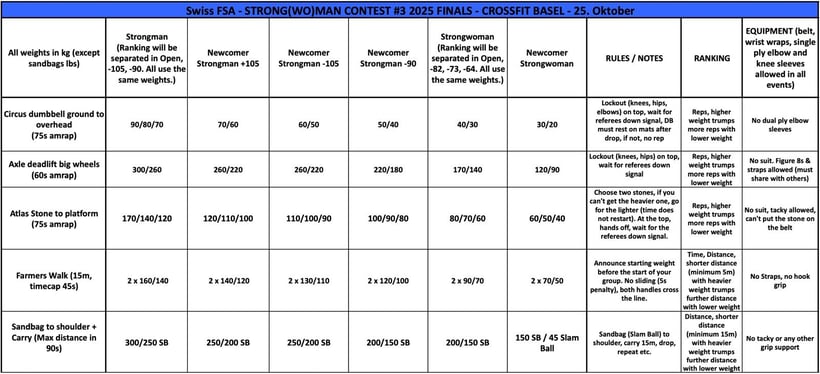 **: Strongwoman Open: ranking will be done overall an separeted in weight classes! (>82kg / <82kg)