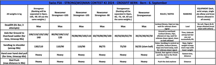 **: Strongwoman Open: ranking will be done overall an separeted in weight classes! (>82kg / <82kg)